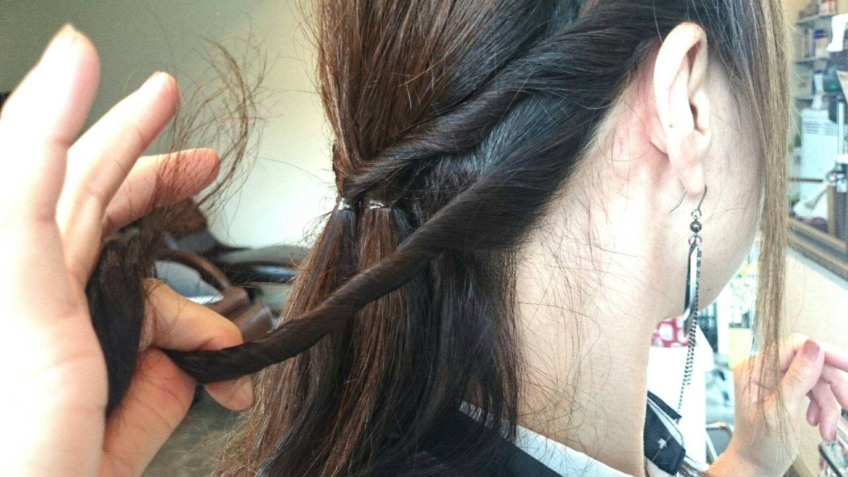 こちらも上の毛でやったのと同じように反対側もねじりまーす。