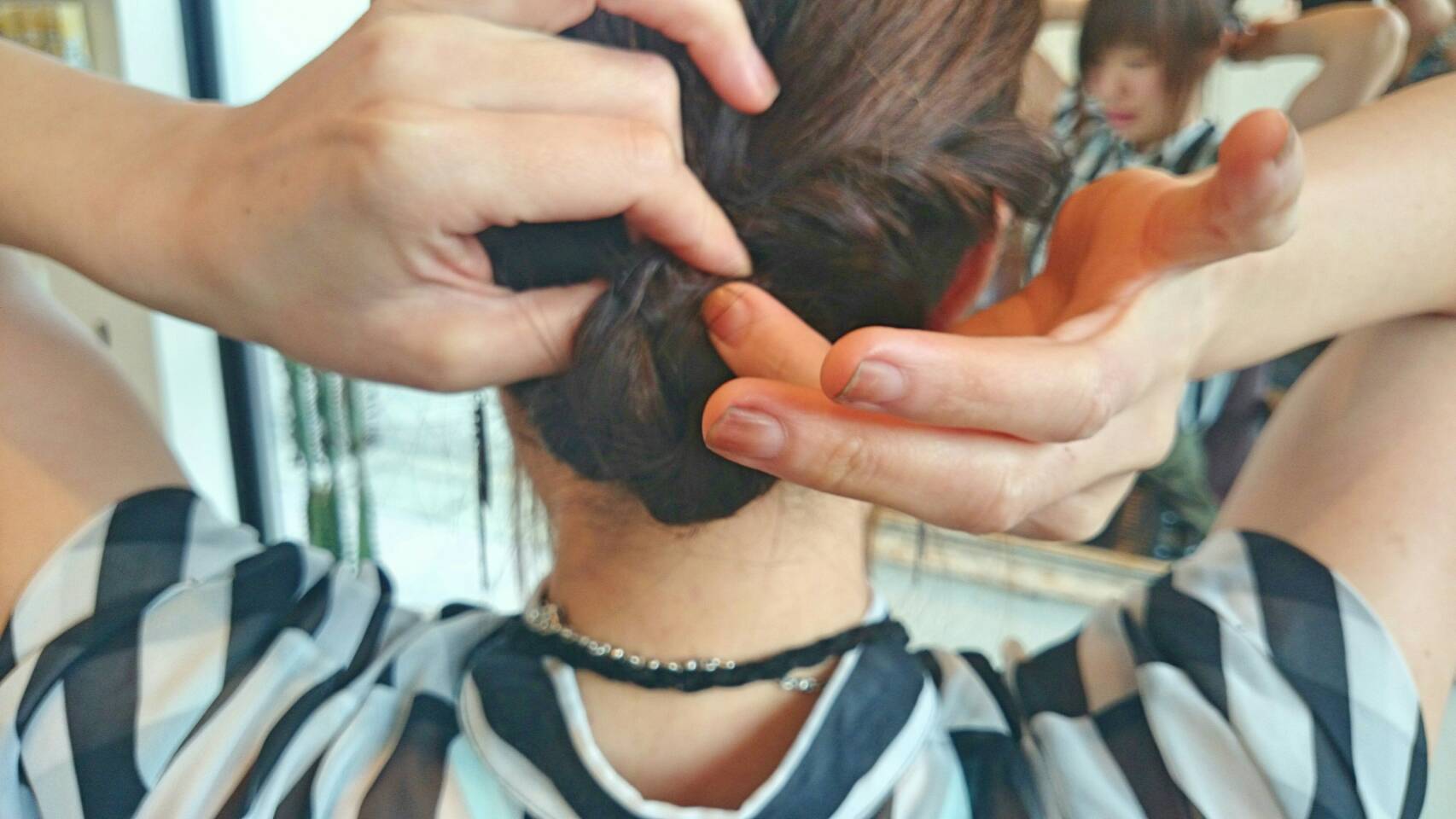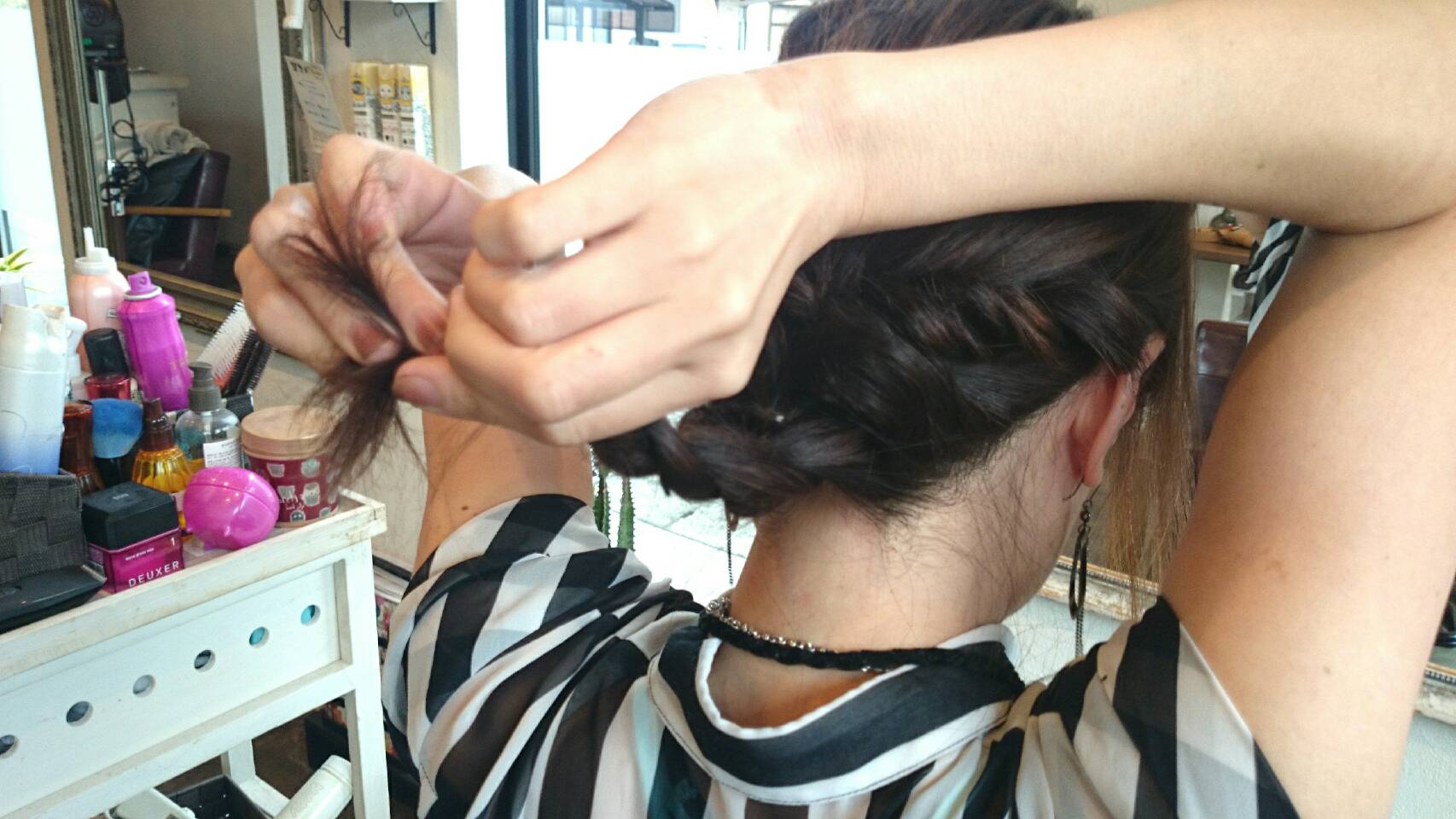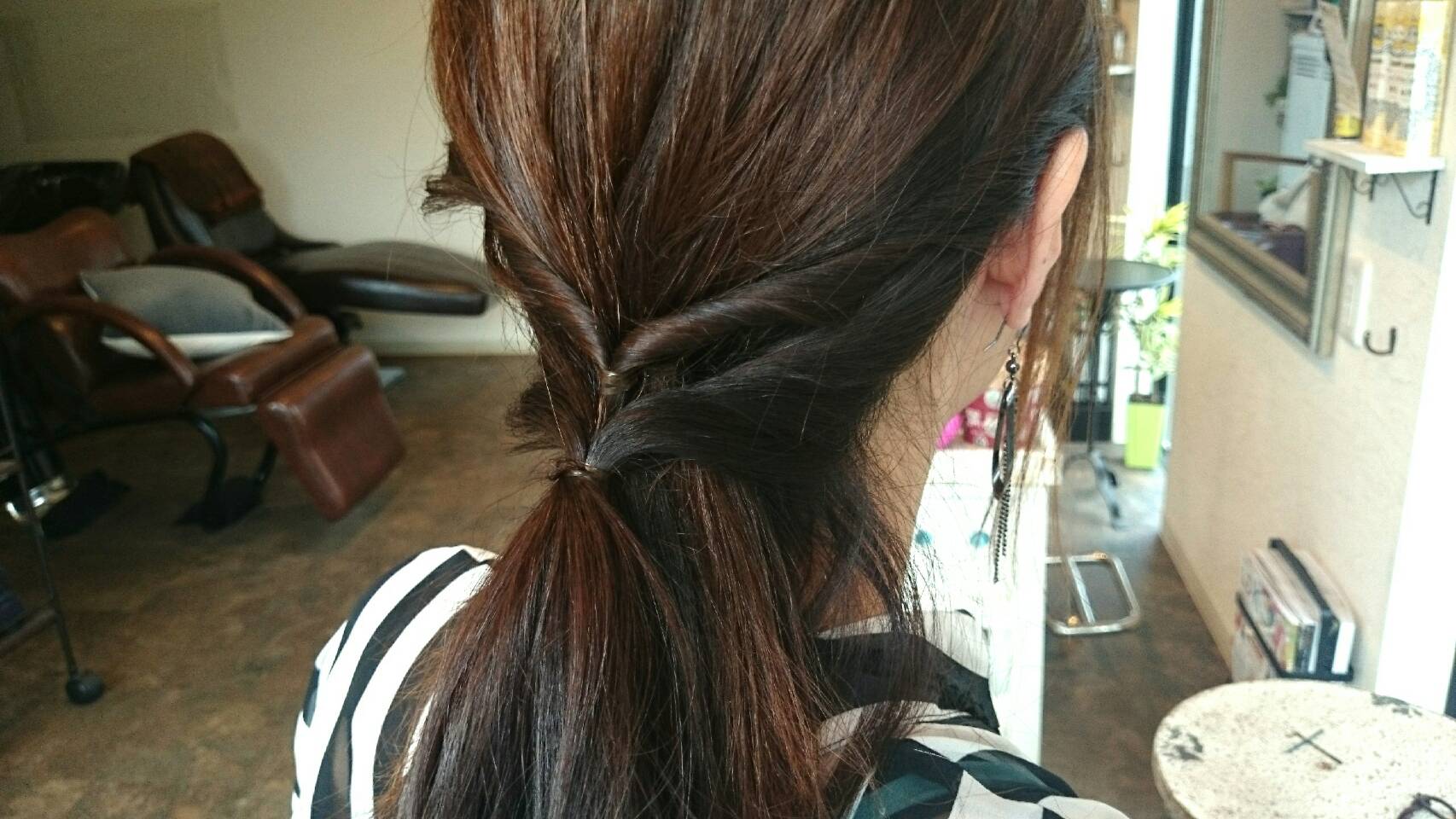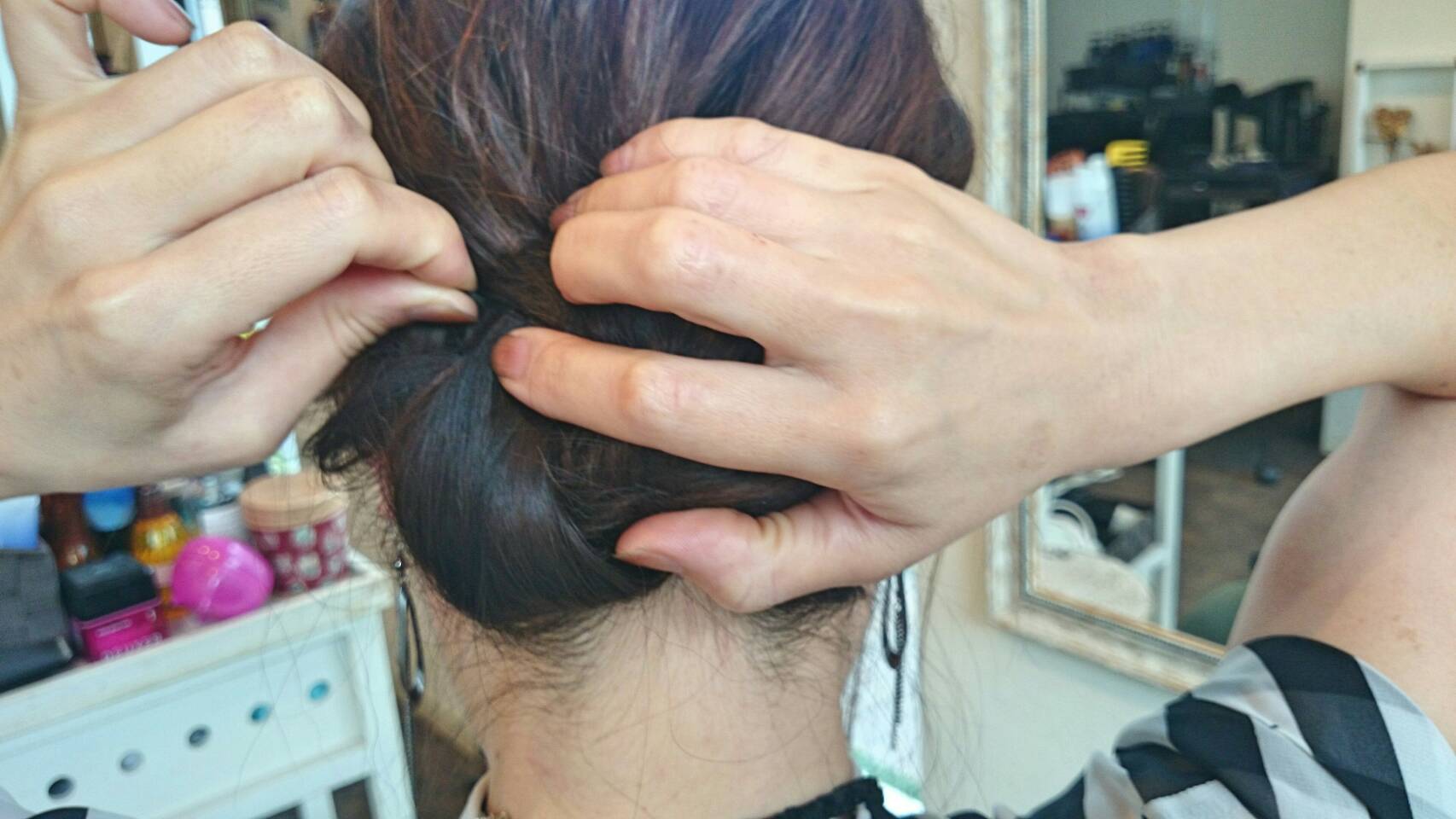 ゴムの結び目が出てきちゃう!って方は、バレッタとかあると隠せちゃいます☆