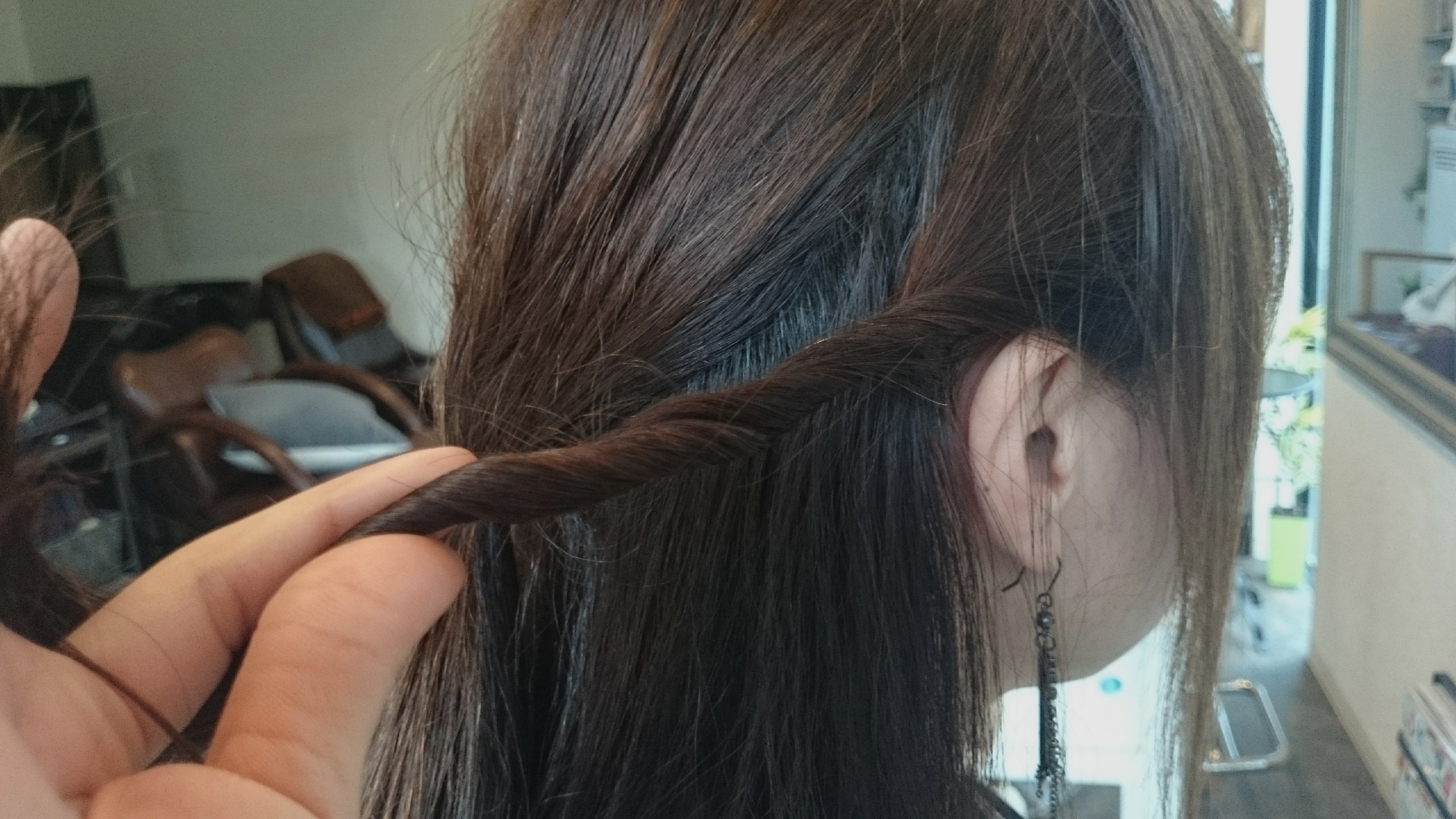 耳に近い方から少しずつ引き出していきます。