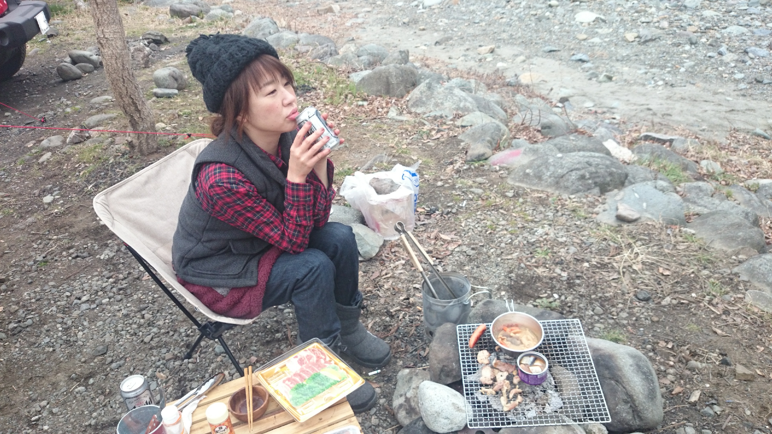 久々のキャンプ飯はやはりBBQとビール!!と言う奥様のリクエスト。