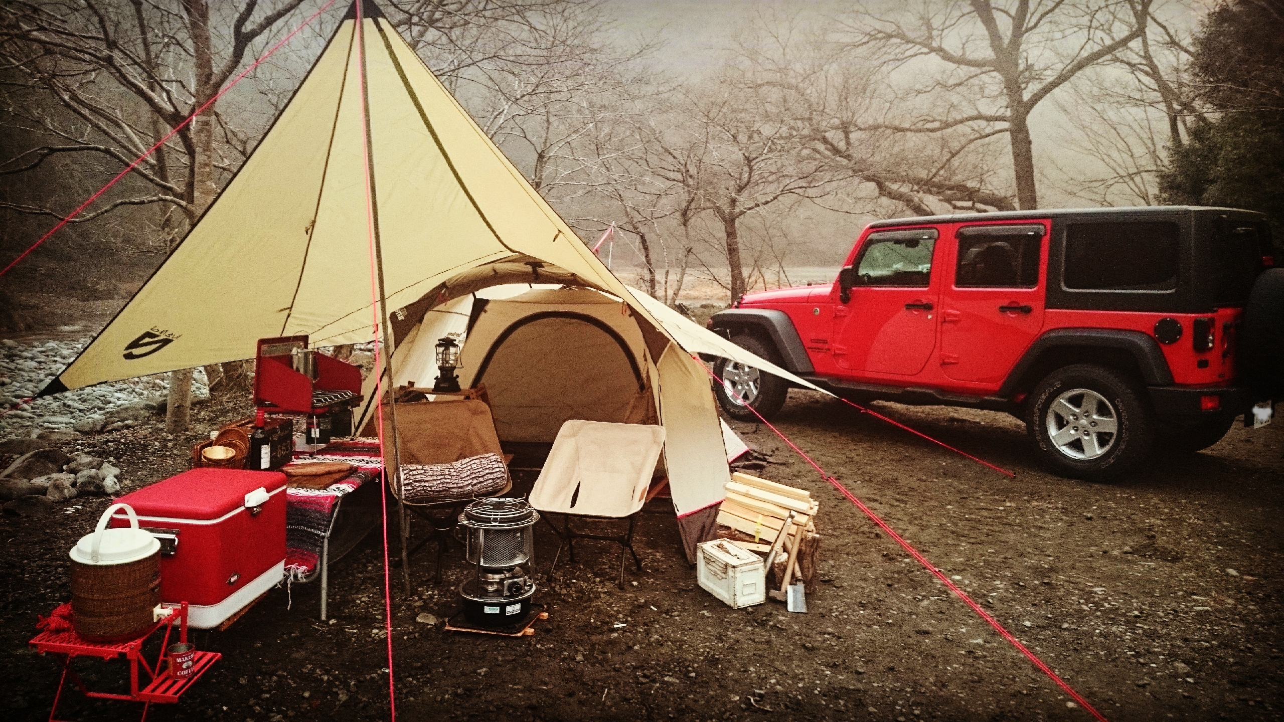 テントもタープも初張りでしたが何とか形になりました。