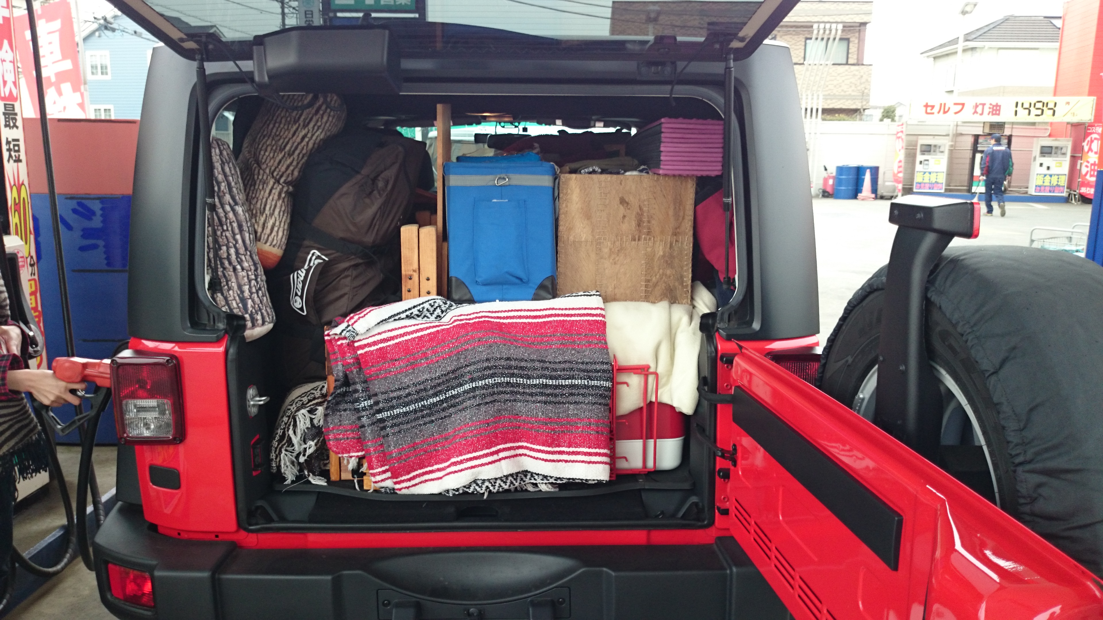 後ろの席を2つ倒してもこのパンパンっぷり・・・。